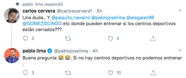 Es palpable en este sentido el desconcierto que existe entre jugadores y jugadoras profesionales. Pablo Lima (@pablojoselima), actual número 4 del ranking WPT, respondía a la pregunta de un entrenador de pádel valenciano sobre dónde se podría entrenar si los centros deportivos permanecerían cerrados. A lo que el brasileño responde: «Buena pregunta. Si no hay centros deportivos no podemos entrenar.»