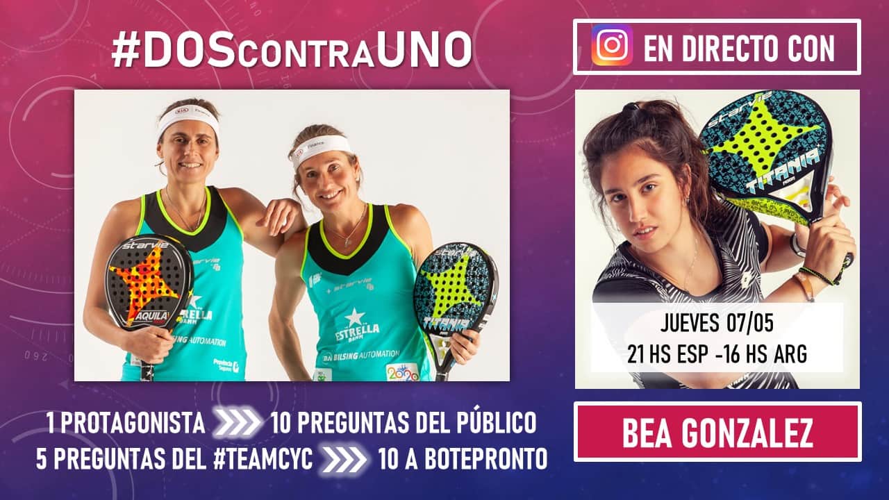 Ya está disponible la entrevista a Bea González en Pádel y Punto. La jugadora malagueña participó en el espacio «DOScontraUNO» del canal de las jugadoras Carolina Navarro y Cecilia Reiter, mostrando su cara más personal a la hora de contestar a las preguntas de sus seguidores y del «Team CyC».