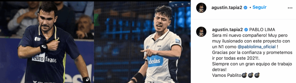 Comienzan por tanto, un nuevo proyecto juntos como compañeros en el circuito World Padel Tour con el que Tapia dice estar «muy pero que muy ilusionado».