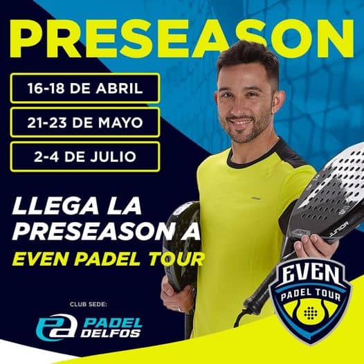 El primer torneo tendrá lugar del 16 al 18 de abril, mientras que el siguiente, se celebrará del 21 al 23 de mayo. Finalmente, el tercer y último torneo de esta preseason de Even Padel Tour tendrá lugar del 1 al 4 de julio.