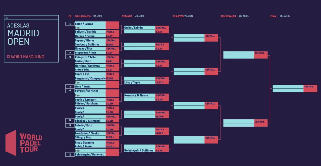 WPT nos trae el cuadro final masculino de este Adeslas Madrid Open 2021 que arranca este miércoles con 12 partidos que incluirán el estreno en esta temporada de algunas de las parejas llamadas a pelear por todo este año.
