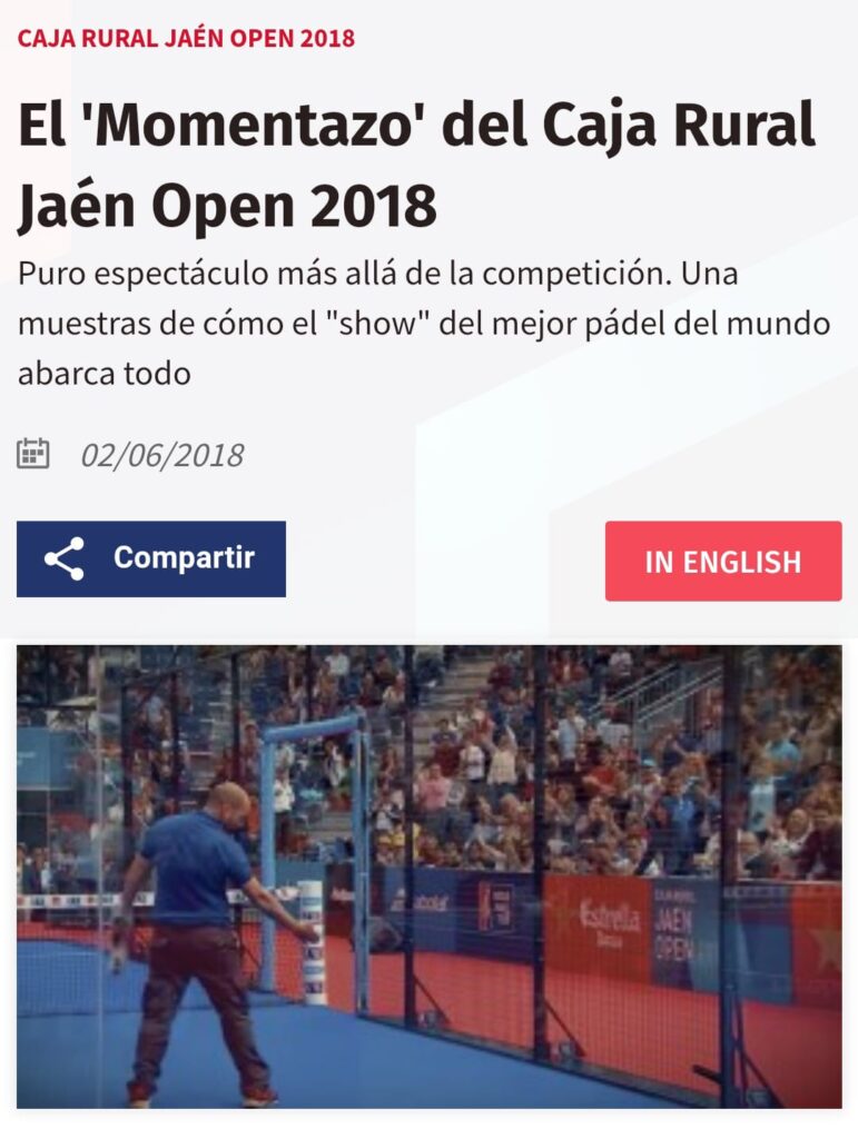En 2018, el propio circuito WPT titulaba: «El Momentazo del Caja Rural Jaén Open. Puro espectáculo más allá de la competición. Una muestra de cómo el «show» del mejor pádel del mundo abarca todo.» Adivinad quién era el protagonista de la foto…