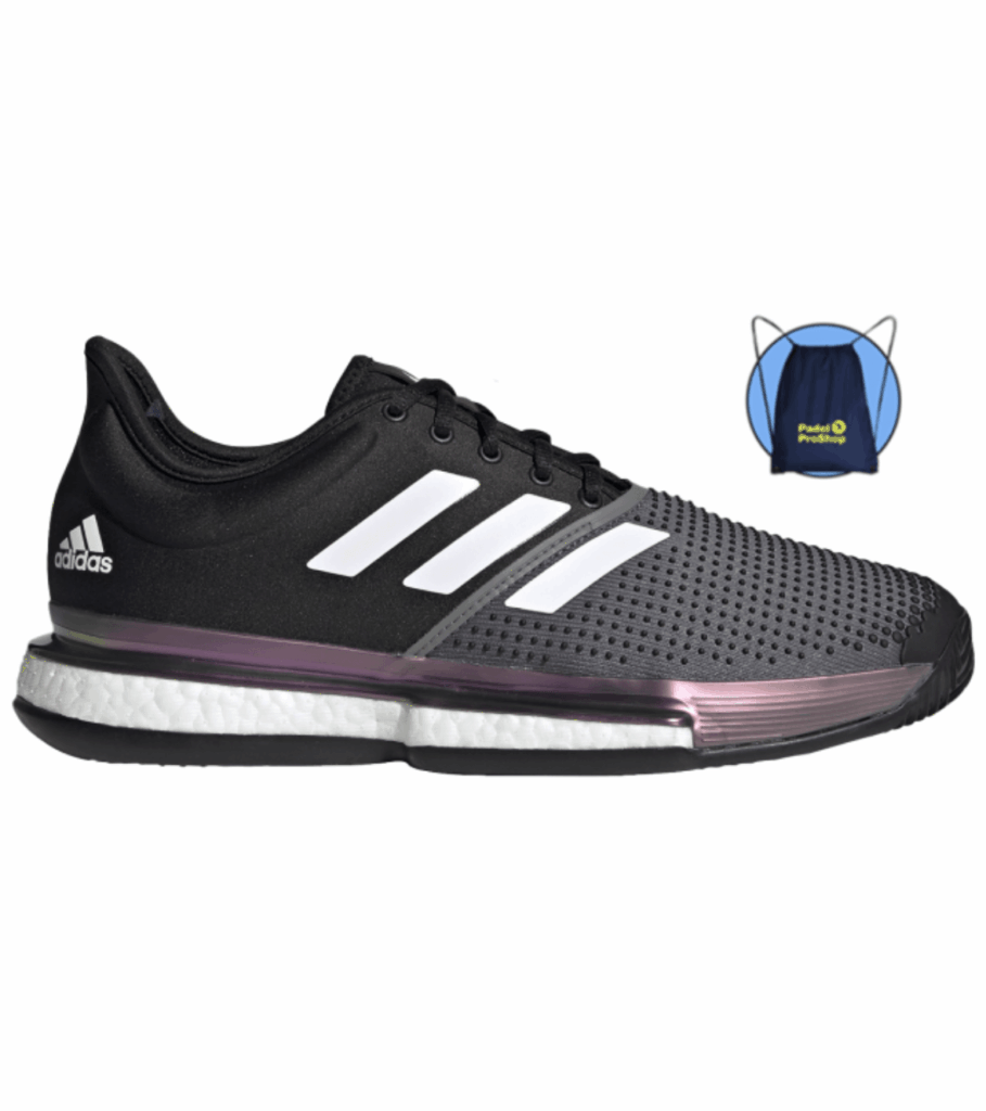 Las zapatillas de Ale Galán son las Adidas SoleCourt M Clay Primeblue negras con tecnología Bounce. Esta zapatilla presenta una parte superior de gran sujeción con refuerzos estratégicos en las zonas de mayor desgaste. La estructura de TPU confiere mayor estabilidad en los cambios de dirección rápidos. La tecnología Boost te ofrece un retorno de energía increíble y una pisada ligera.