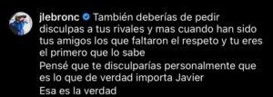 recriminarle que no le pidiera perdón personalmente, ya que las personas de la grada que no pararon de meterse con él, eran amigos suyos: