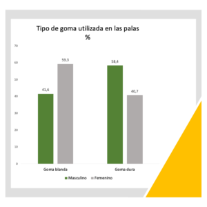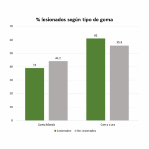 - Entre los lesionados, el 61% juegan con goma dura, mientras que entre los no lesionados hay un % más equilibrado.