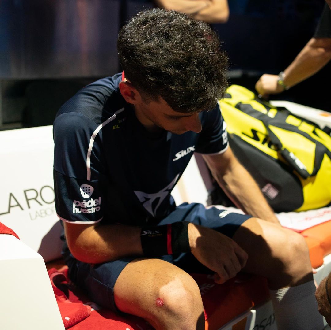 Chingotto sufrió una caída en la final masculina al ir a recuperar una bola fuera de pista. El partido estuvo parado durante unos minutos y el ritmo al que estaban jugando el de Olavarría y Paquito se cortó de golpe.