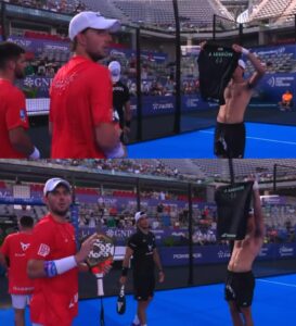 Lebrón y Galán se produciría el habitual choque de manos y saludos entres las dos duplas pero, nadie estaba preparado para lo que iba a venir a continuación. Alejandro Galán saludó a ambos rivales y cuando se estaba marchando y era
