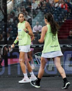 A partir de aquí no hubo más historia. Gemma y Claudia defendían muy bien sus servicios, con lo que pasaban los juegos y se les acortaba el tiempo de reacción a Ari y Paula. Así siguió todo y Gemma y Claudia empataron el partido con el 6-4 en el marcador.