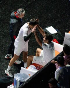 En la pista principal, los número 1, Tapia y Coello abrían la jornada de la tarde donde no iban a pasar por encima, sino que sufrirían. Arturo Coello y Agustín Tapia se enfrentaron a Álex Chozas y Lucho Capra que dieron mucha guerra y fueron capaces de forzar el tercer set a los nº1. Aun así Tapia y Coello demostraron con el ranking en la mano porque eran los nº1 al ganar 6-2/4-6/6-1. En el segundo partido de la jornada, Yaguas y Garrido ganaban pero no arrasaban a la nueva generación de Nox Leo Augsburger y Tino Libaak.Flying through to the quarter-finals 🚀 @yanguasjr & @javigarrido10