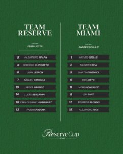 El primer partido de la Reserve Cup 2025 fue el de Edu Alonso y Agustín Tapia contra Mike Yanguas y Javi Garrido. El duelo fue muy reñido. En el primer set, el cordobés y su compañero, superaron a sus oponentes con un 6-3. Luego, el argentino y el español salieron a flote, y así ganaron el segundo set por un gran 6-3. Por último, se jugó el super tiebreak que para la suerte del equipo Team Miami, Tapia y Alonso lo ganaron por un increíble 10-7.Coello y González se consagran en dos sets