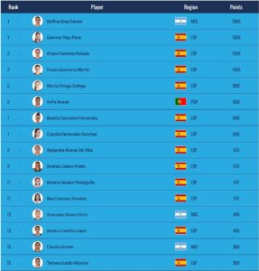En la categoría femenina la vida sigue igual. Tendríamos que bajar hasta el puesto 32 para encontrar a Jimena Velasco, que ascendió un puesto, siendo todos los cambios en el resto del top 100 mínimos. El salto más grande es para la española Lucia Peralta, con cinco puestos  que la colocan en el número 73, y la mexicana Camila Ramme, que con otras cinco posiciones de ascenso consigue ingresar en el top 100 situándose en el número 97. Gemma Triay y Delfi Brea consiguen recortar puntos a las reinas de la categoría, Ariana Sánchez y Paula Josemaría, en su objetivo de llegar a ser las numero 1, aunque la diferencia en puntos sigue siendo considerable. https://www.instagram.com/p/DHTHt4BI425/?utm_source=ig_web_copy_link&igsh=MzRlODBiNWFlZA==