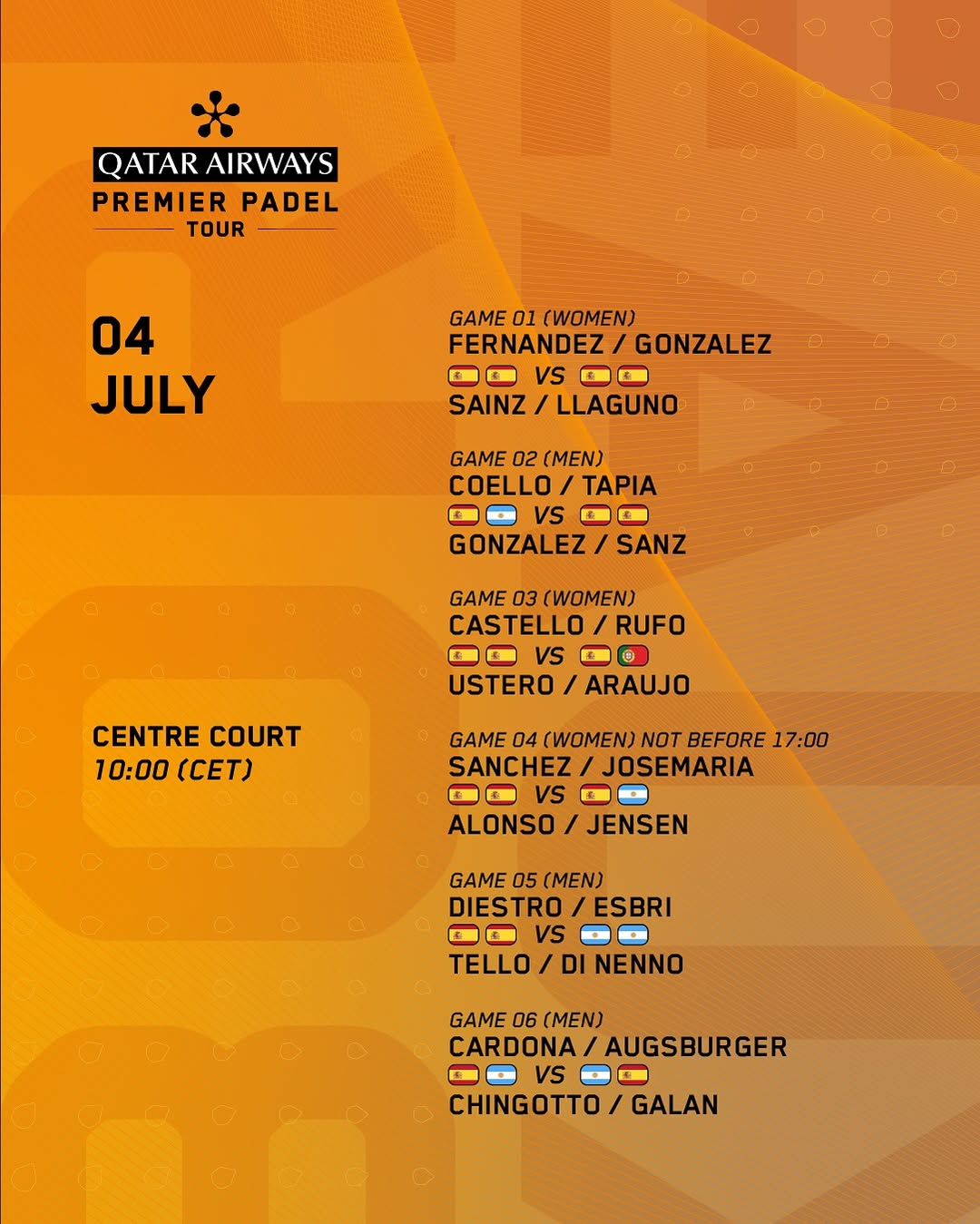 A continuación te detallamos el orden de juego de los partidos.