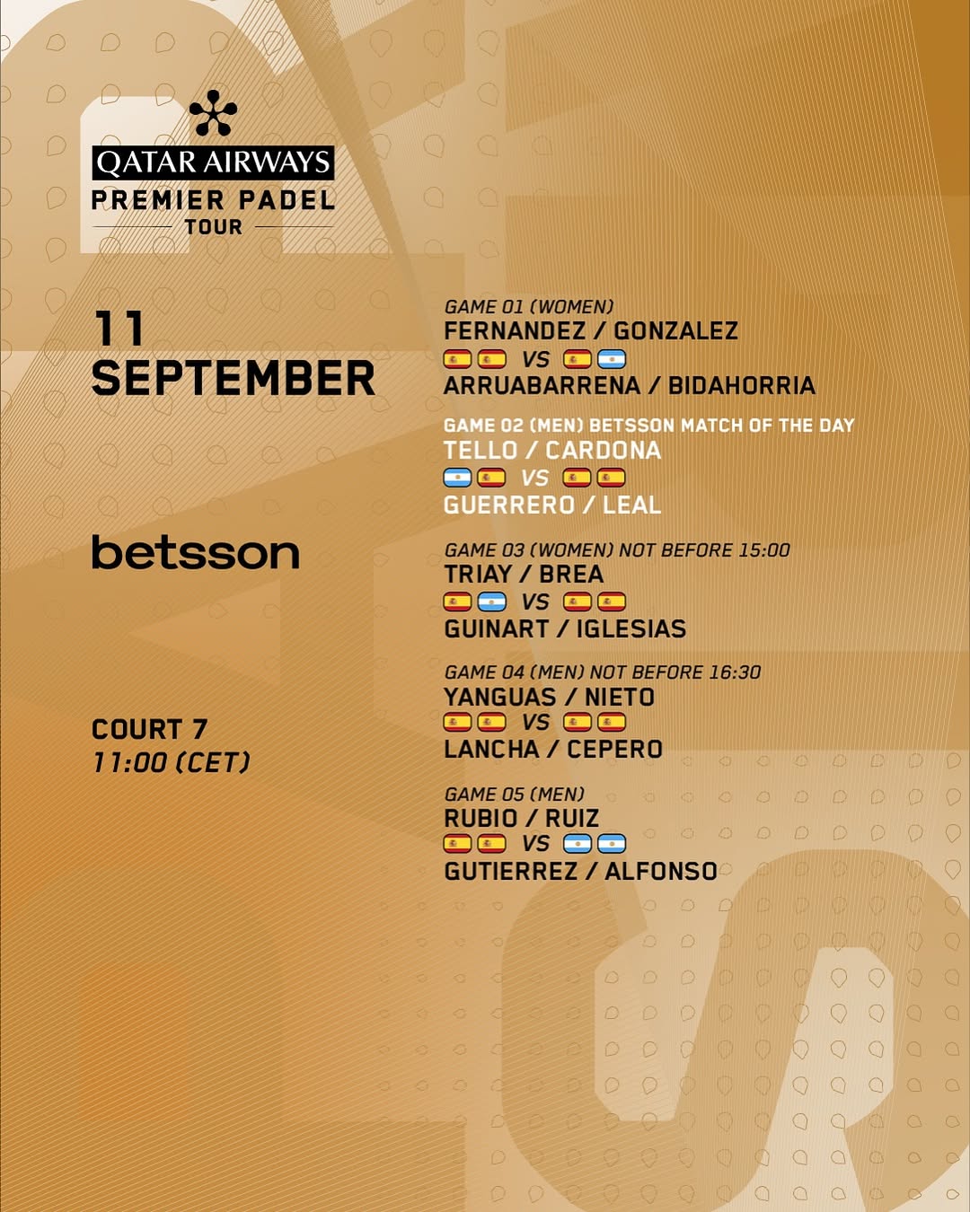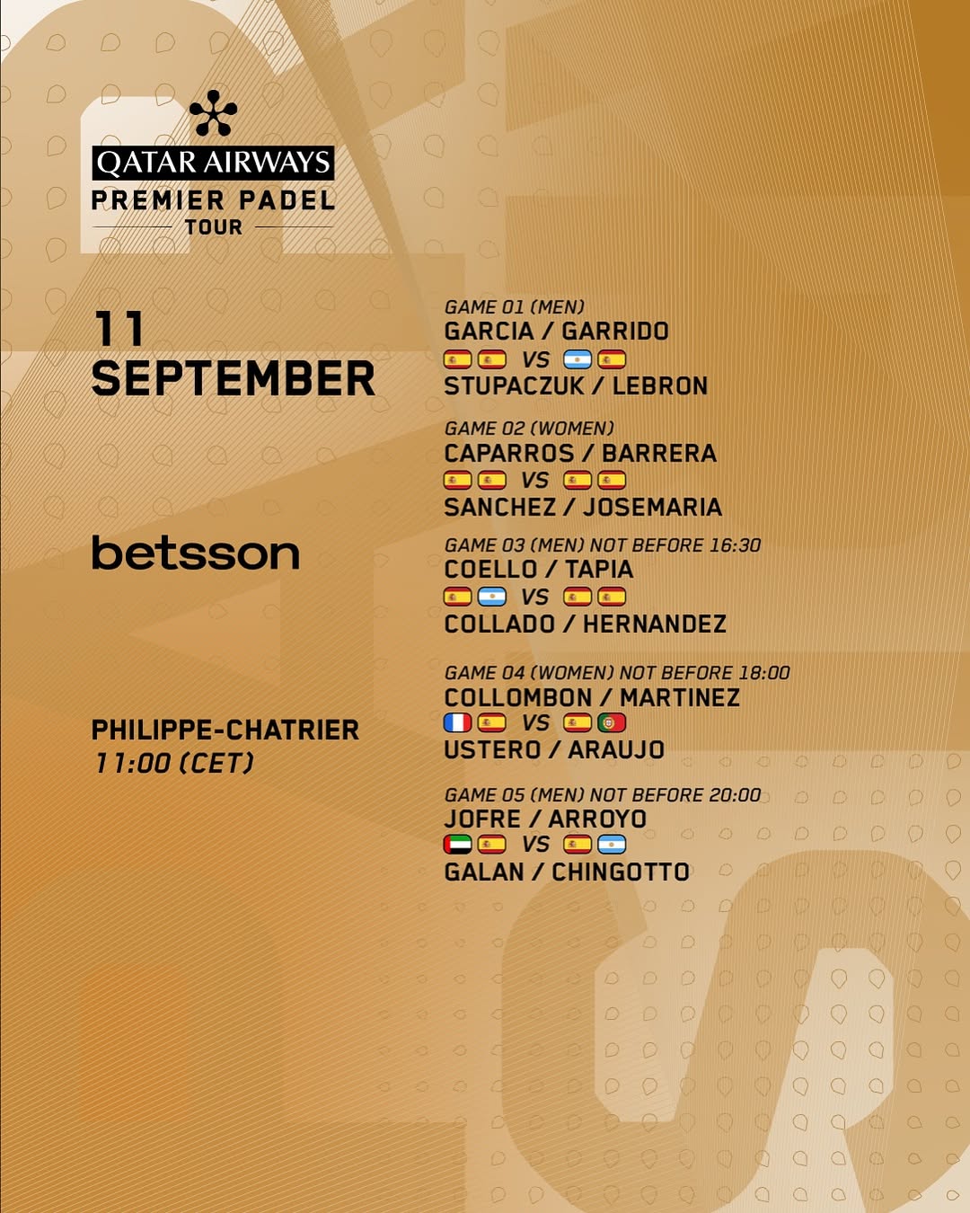 Hoy, jueves 11 de septiembre, se disputan los octavos de final del Paris Major Premier Padel. ¿Quieres saber los horarios, dónde puedes verlo y dónde apostar? Te lo contamos a continuación.