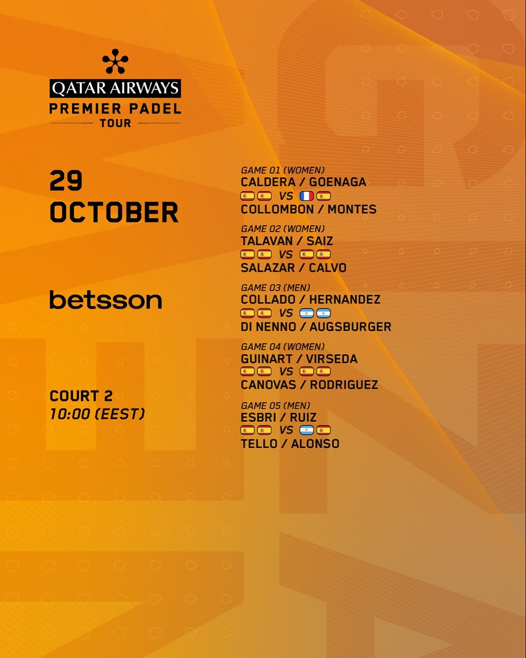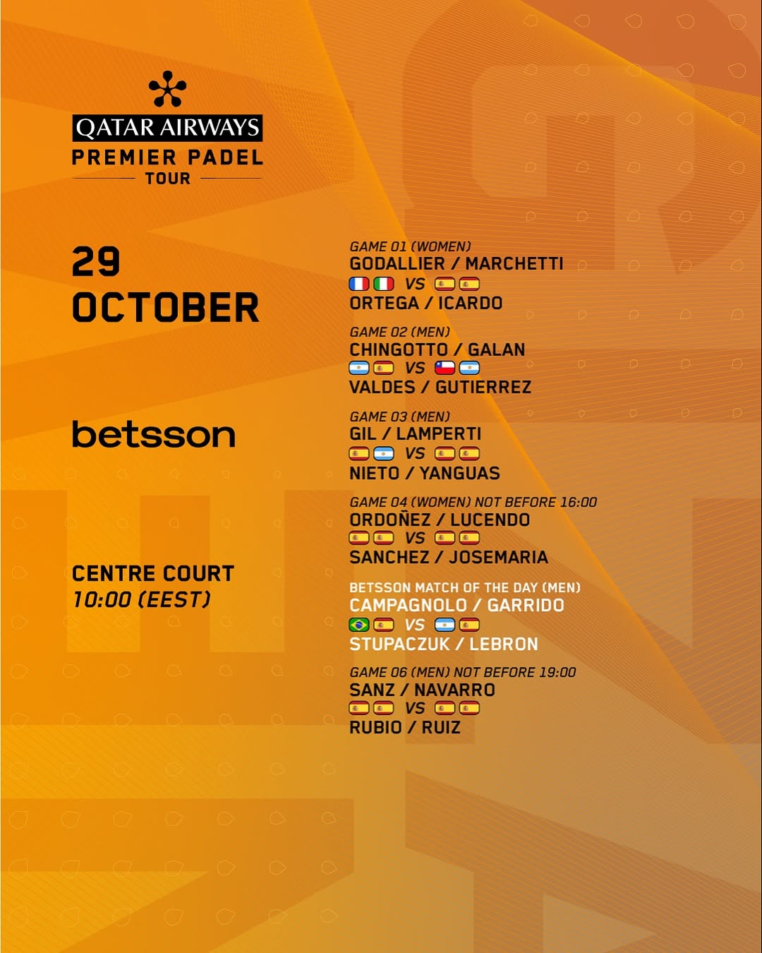 Octavos de final del Premier Padel Newgiza P2, ¿Quieres saber los horarios, dónde puedes verlo y dónde apostar?, te lo contamos a continuación.