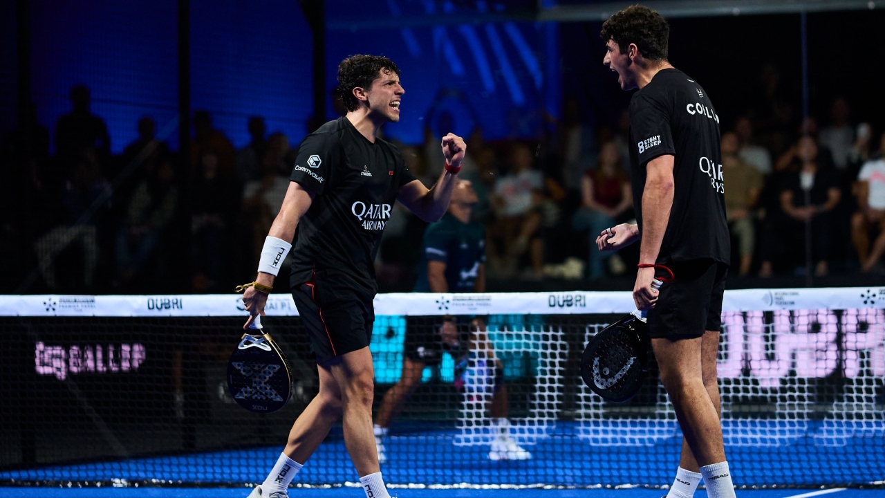Con la lucha por el número 1 más viva que nunca tras las victorias de Chingalán en el Milano P1, Newgiza P2 y el FIP Cup World Pairs. No obstante, en Dubai, Coello y Tapia volvieron a reinar y alejarse un poco más de los de Jorge Martínez. En el primer set, Coello y Tapia salvaron un break en el primer juego para después romper el servicio de sus rivales en el segundo juego y esto desequilibraría la balanza en favor de los número 1 para cerrar la primera manga con un 6-3. Chingalán buscaba alternativas para cambiar la dinámica del encuentro variando el sentido de los globos y siendo muy contundentes en la red y en el choque de voleas, pero con 3-3 en el luminoso, los de Martín Canalli rompieron el servicio de Ale Galán para luego cerrar el partido con un 6-4 y alejarse más de sus perseguidores en la lucha por la cima en el ranking, consiguiendo su vigésimo noveno título como pareja sin ceder ningún set esta semana.