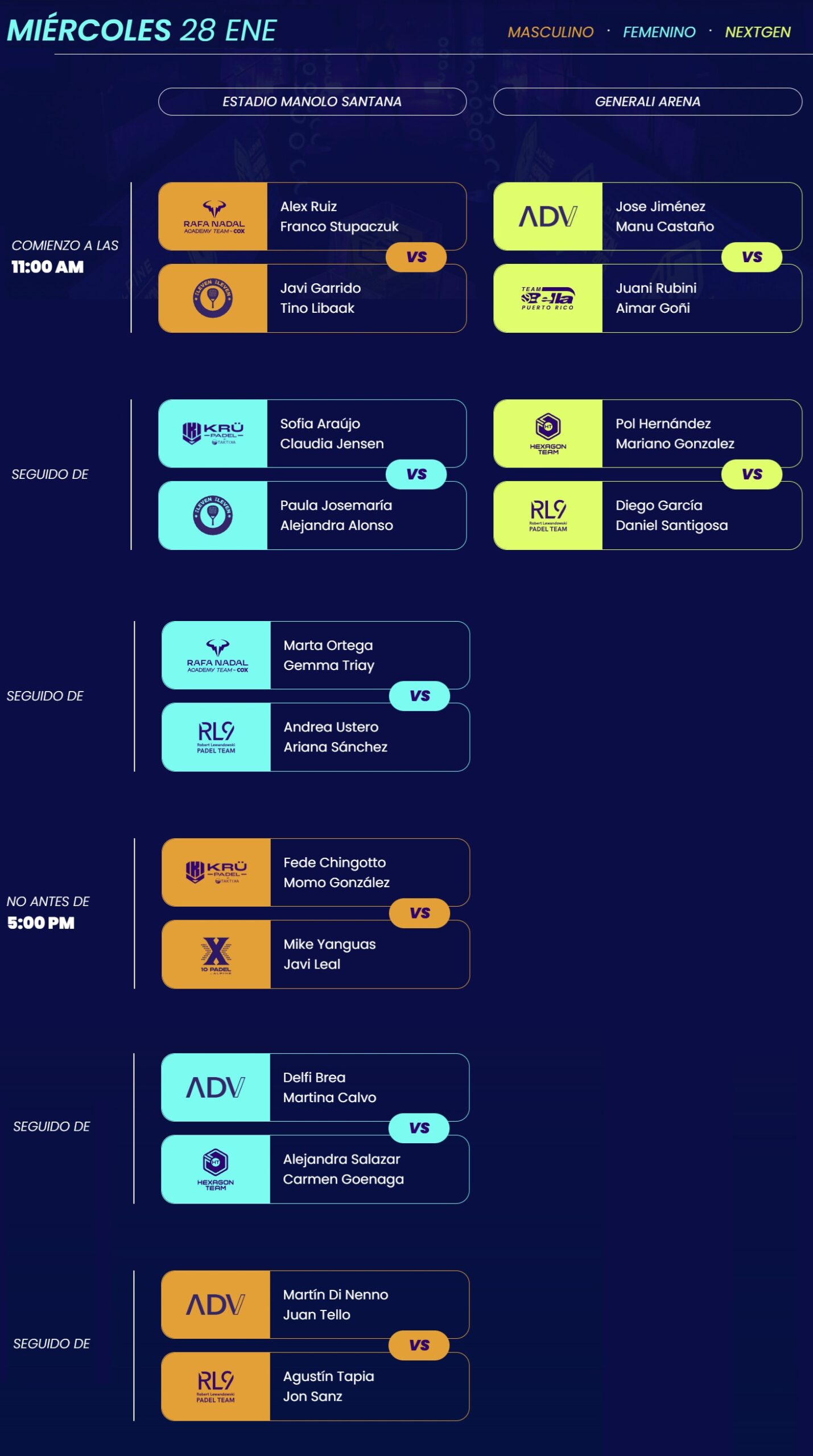 Todos los partidos se retransmitirán en el canal de YouTube del evento. Además, DAZN proporcionará cobertura global. https://www.instagram.com/p/DT_T-9zAk9J/?utm_source=ig_web_copy_link&igsh=MzRlODBiNWFlZA== Únete a nuestra comunidad de Telegram haciendo click aquí, chat general, informaciones secretas y mucho más sobre el pádel.
