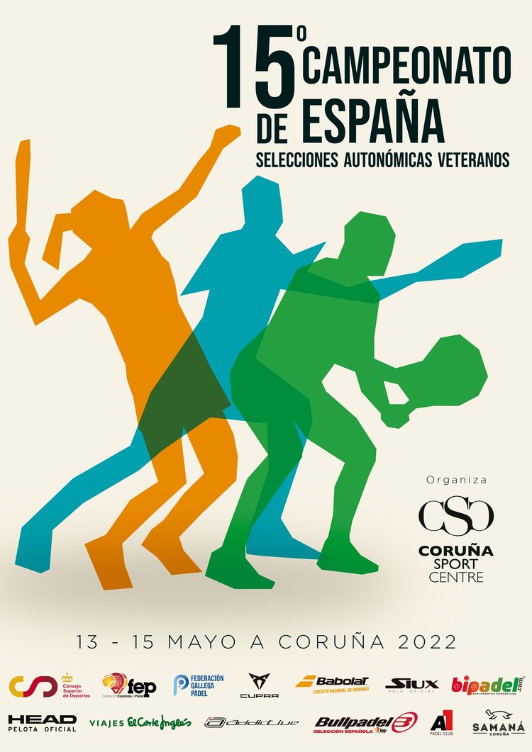 Un total de 32 conjuntos con más de 650 deportistas inscritos, entre ellos varios/as campeones/as del mundo, participarán en este Campeonato de España. A Coruña será escenario este fin de semana del Campeonato de España de Selecciones Autonómicas de Veteranos de 1ª y 2ª categoría. Más de 650 deportistas están inscritos en una competición que tendrá como sede principal las instalaciones de Coruña Sport Centre. Un total de 32 combinados disputarán esta cita que afronta su decimoquinta edición bajo la organización del propio club y la dirección arbitral de José Carlos Trillo y Carolina Montenegro. “Estamos ante uno de los grandes eventos del calendario de competición de la Federación Española de Pádel”, ha afirmado el presidente de la FEP, Ramón Morcillo. La competición repartirá sus partidos entre la jornada del viernes, con los cuartos de final; la del sábado, con las semifinales y las eliminatorias del 9ª al 16º puesto; mientras que las finales están programadas para el domingo.