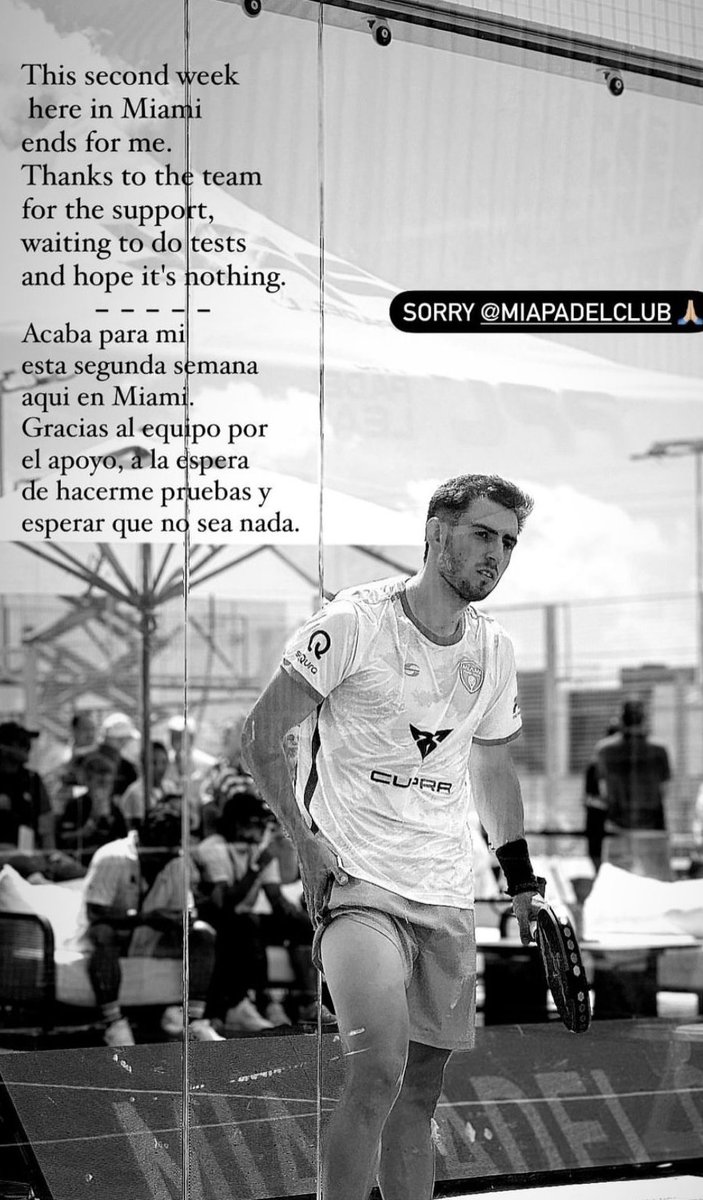 El jugador ha comunicado que se despide de la Pro Padel League por ahora agradeciendo mucho al equipo por todo el apoyo recibido tanto estos días anteriores, como en los que apareció la supuesta lesión, ya que aun no hay nada confirmado.