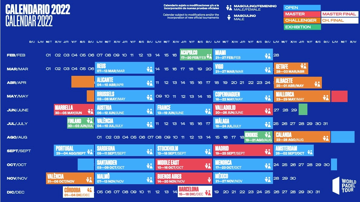 Esta nueva temporada Challenger se presenta apasionante, compuesto por cinco pruebas más un Challenger Final en la ciudad de Córdoba. Ya se celebró en la temporada anterior un Open en la ciudad andaluza, en el que hubo un gran ambiente y se proclamaron campeones Paquito Navarro y Martín Di Nenno. Por tanto, así quedaría el calendario Challenger con los nuevos cambios:- Del 28 de marzo al 3 de abril – Getafe – Polideportivo Juan de la Cierva – WPT Getafe Challenger