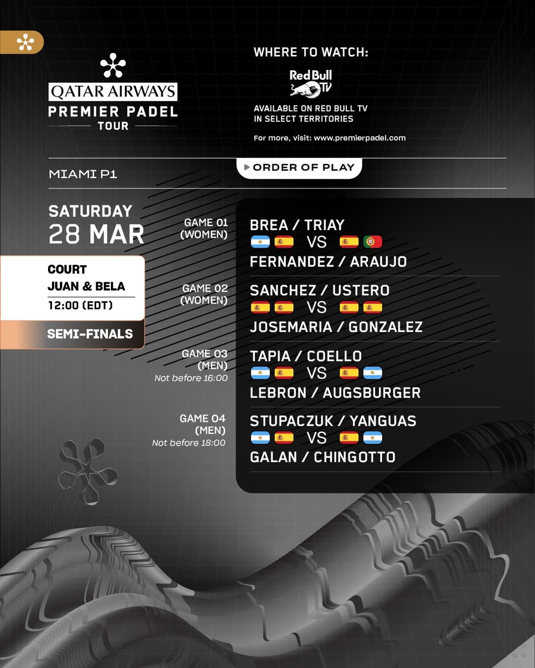 El Premier Padel Miami P1 encara su recta final para decidir a los finalistas y aquí te contamos todo lo que debes saber para no perderte nada de este torneo.
