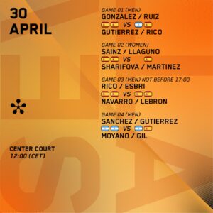 El primer torneo del año en territorio español se disputará en un lugar emblemático de la provincia de Sevilla, el estadio de La Cartuja acogerá el segundo torneo en Europa de 2024 y la expectación es máxima de ver como se va desarrollando el cuadro y que pareja consigue llevarse el título. El cuadro principal comienza hoy día 30 de abril y finaliza este domingo día 5, donde conoceremos a las campeones y a los campeones del sexto torneo de la temporada.
