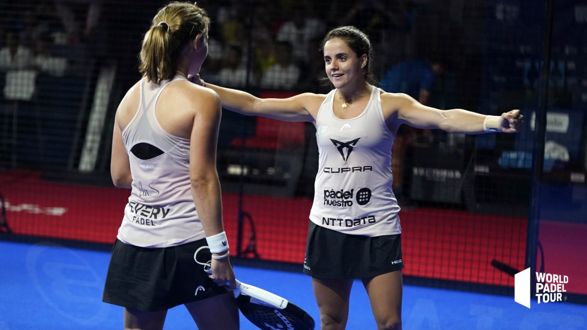 Encuentro entre la pareja femenina más longeva del circuito y las número 2 del ranking mundial. Partido inaugural en este Martín Carpena de la jornada de semifinales. Por un lado, las gemelas, que vienen más descansadas debido a que, en cuartos, su rival Marta Marrero anunciaba su positivo por COVID-19 y las hizo pasar sin jugar, y por otro Ari y Paula en busca de su novena final de la temporada. Como era de esperar, ambos binomios ingresaban al 20×10 mostrando sus propuestas. La igualdad en el azul sería la protagonista los primeros juegos. Sin embargo, con 3-3 en el marcador, las gemelas atomikas rompían el servicio y se situaban 4-3. A pesar de romper, las número 2 conseguían un contra-break en el juego posterior. A partir de aquí, ambas duplas mantenían a buen recaudo su servicio, hasta que con 5-5, Ari y Pau conseguían un nuevo break. Esta ventaja les sería suficiente para llevarse la primera manga por 7-5. El segundo set sería casi calcado al anterior. Los primeros juegos se ganaban al saque. Esta vez, el break de las Alayeto llegaría en el quinto juego y se ponían 3-2 arriba. Sin embargo, como pasara en el primer set, acto seguido, las número 2 rompían y volvían a igualar la contienda. Mapi y Majo nuevamente se adelantaban con un break pero era corregido inmediatamente por sus rivales al igual que en la primera manga. Desde este contra-break, las dos duplas ganaban su servicio y con 5-4 para Ari y Pau, estas conseguían ganar el juego definitivo al resto y cerrar su pase a la final. El resultado final fue 7-5 / 6-4. Las chicas de Gustavo Pratto disputarán su novena final de la temporada.