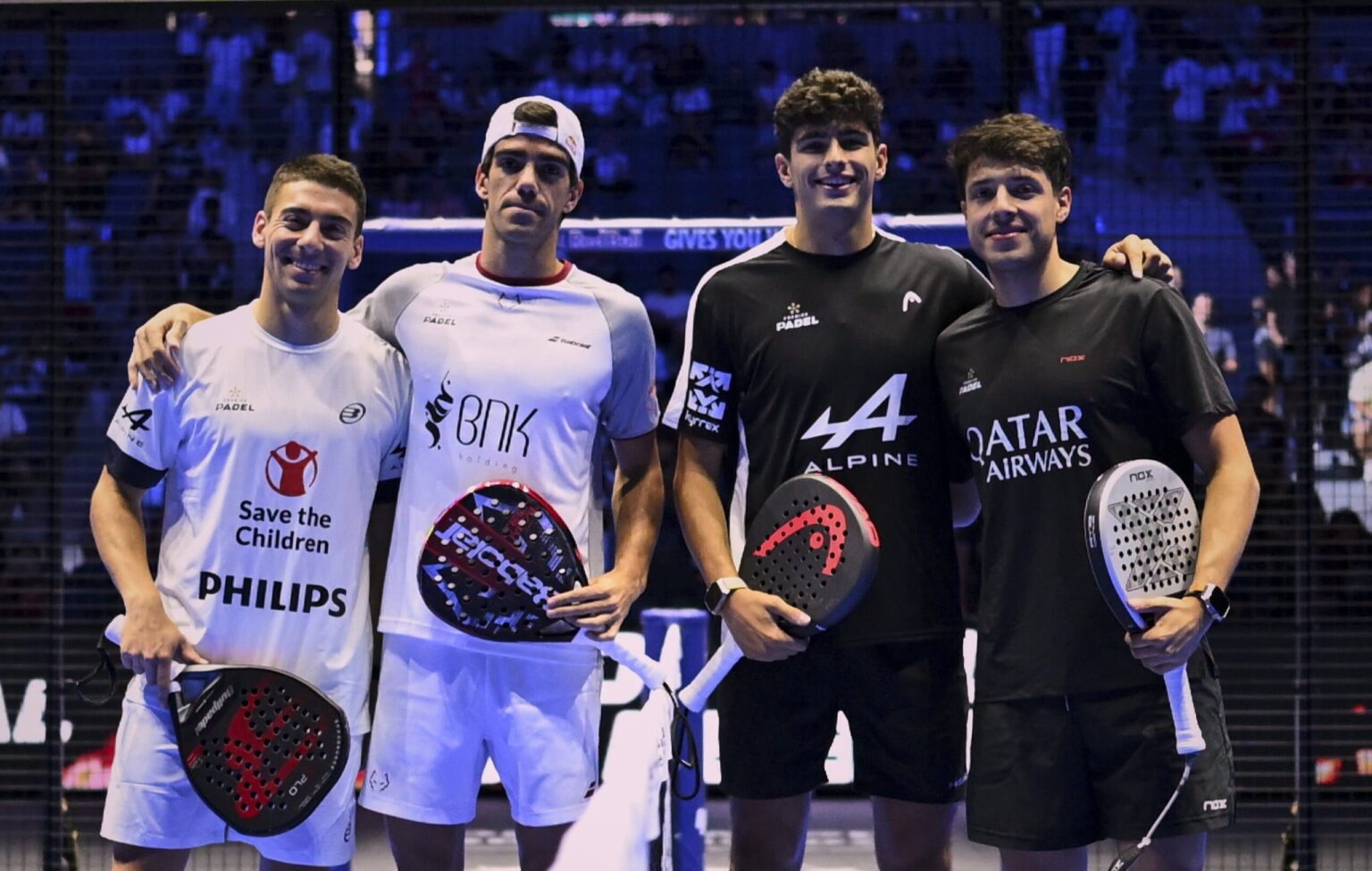 Tapia y Coello entraron muy fuertes rompiendo en el primer juego sin perder ningún punto. Tuvieron Lebrón y Di Nenno opciones de break en los 3 primeros juegos al resto pero no consiguieron concretar ninguno. Sufrieron mucho al saque los números 1, pero sacaron adelante el set con un 6-4. La defensa numantina de Juan y Martín no fue suficiente ante la pegada de Arturo y la magia de Agus. Las bolas de la pareja número 3 tenían que ser perfectas para que sus rivales no ganaran los puntos con el remate. También llegó rápido el break de Agus y Arturo en la 2º manga. Esta vez, Lebrón y Di Nenno sí que consiguieron romper el saque de sus rivales, devolviendo la igualdad al marcador del set. Pero en el 9º juego, Coello y Tapia apretaron y desequilibraron la balanza. El 2º parcial se cerró con un 6-4, lo que permite a los números 1 encarar su 12º final de la temporada. «Lebrón es un jugadorazo juegue donde juegue, ya sea en la derecha o en el revés», fueron las palabras de elogio de Tapia. Además, el argentino dio las gracias a su compañero por la actitud: «A veces no me doy cuenta del pedazo de compañero que tengo. Arturo me levanta cuando lo necesito».