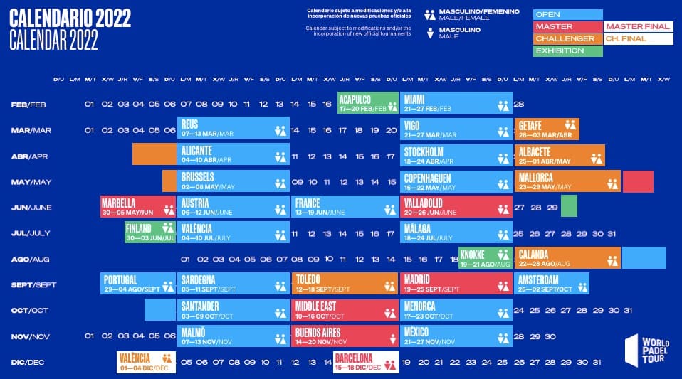 El calendario WPT que dio a conocer AnalistasPadel para la temporada 2022 será el más internacional que haya tenido la organización, con un total de 27 citas distribuidas entre 13 países.